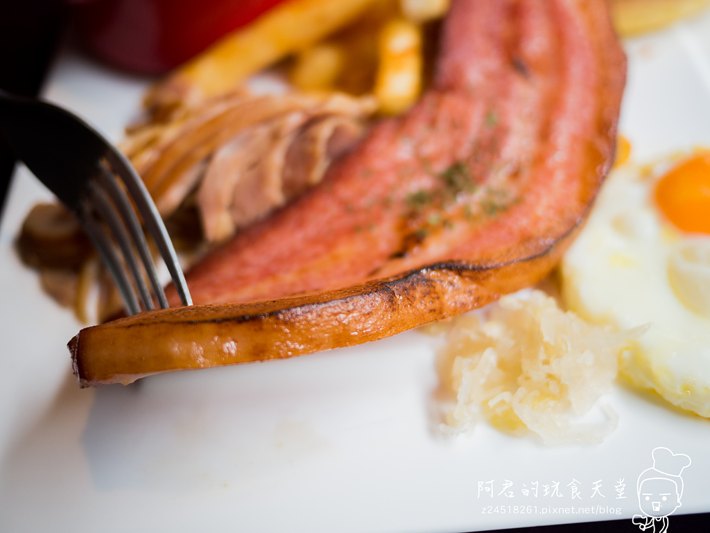 ▼不愧是1.6公分的厚培根,肉質厚實又多汁,看起來很油但是吃起來還好,也不會膩,