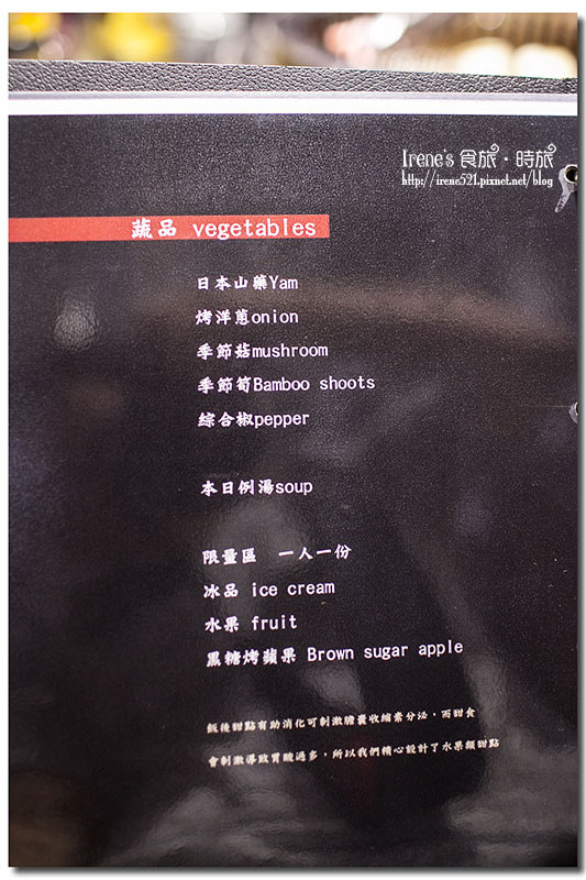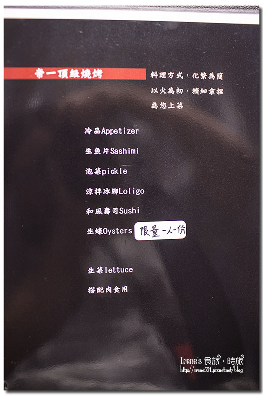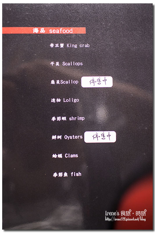 Menu,單點吃到飽的模式,海鮮、肉、蔬菜都有,種類不多,但等級高。