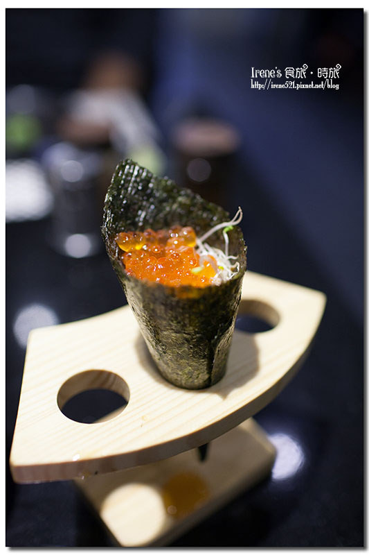 有手捲跟握壽司可選;泰瑞的鮭魚卵手捲,裡面包苜蓿芽,泰瑞不愛。