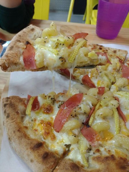 以義大利麵的筆管麵來入披薩,算是老少皆宜款,因為很可愛