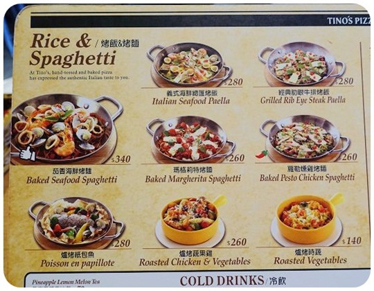 =================以下是堤諾比薩TINO'S PIZZA CAFE's Menu=================