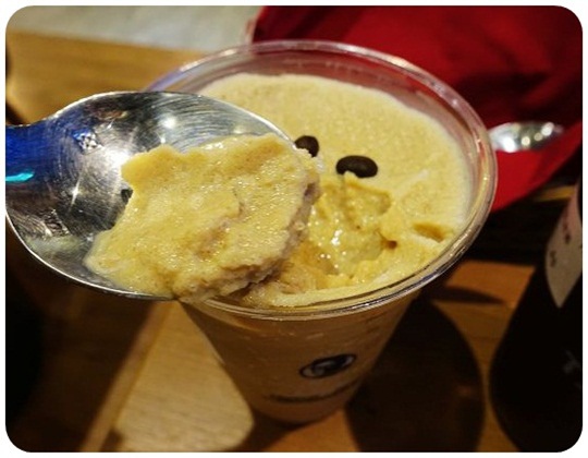 Espresso咖啡冰沙綿密細膩,喝起來香醇入口,比星巴巴的二層星冰樂(上層為冰沙,下層為咖啡)還好喝