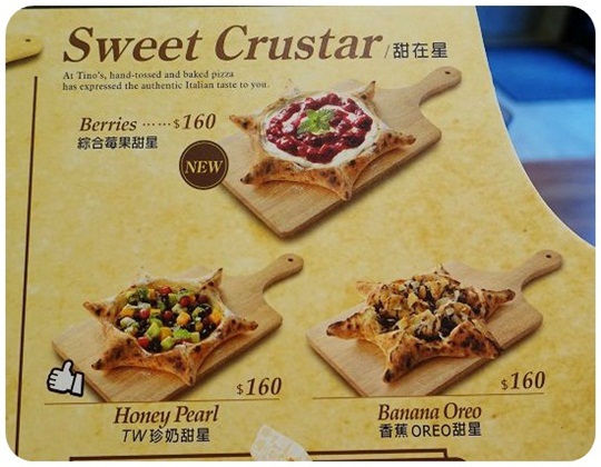 很幸運地,不用遠道到台北、新竹,在台中也有二家店,可以品嚐到Tino's美味的披薩和特別的星星披薩