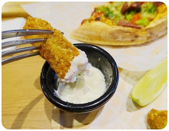 喜歡吃炸魚薯條的人更要來份堤諾拚盤,很推薦這坊魚條,沾上塔塔醬一起吃,超美味~