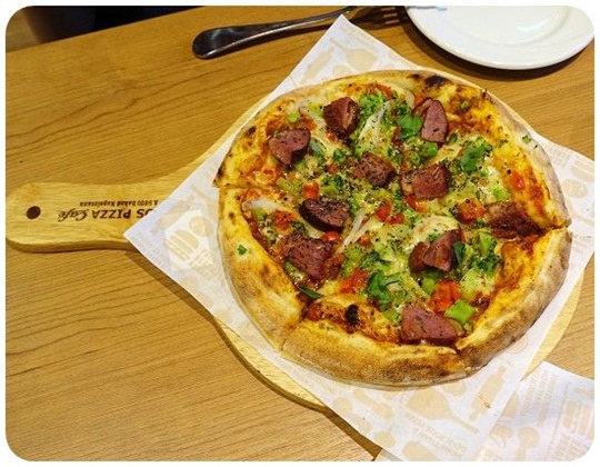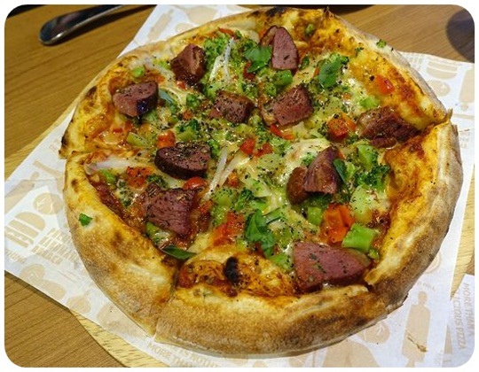 體驗的是小份代號N的拿坡里披薩,好多鴨胸肉和義式香料及蕃茄灑在披薩上面