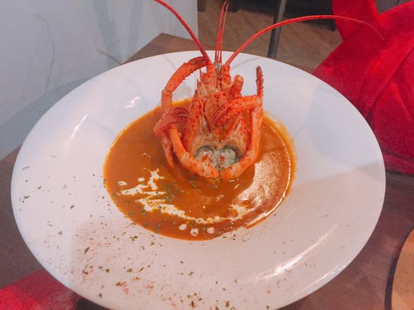 龍蝦濃湯可以搭配蝦頭內的蝦膏攪拌來食用