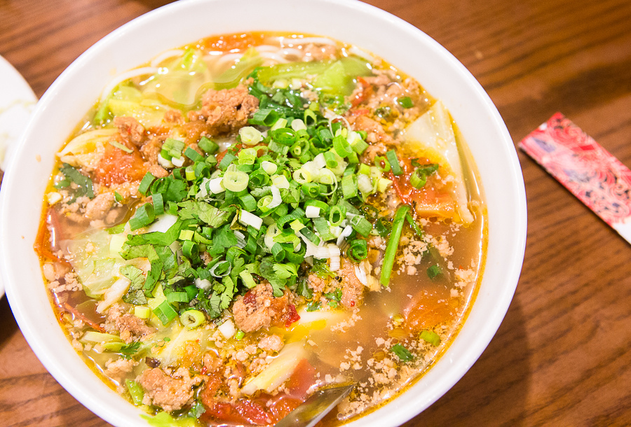 湯頭喝起來略帶點酸度,刨成絲狀的筍子口感略脆