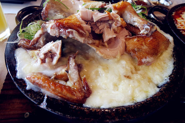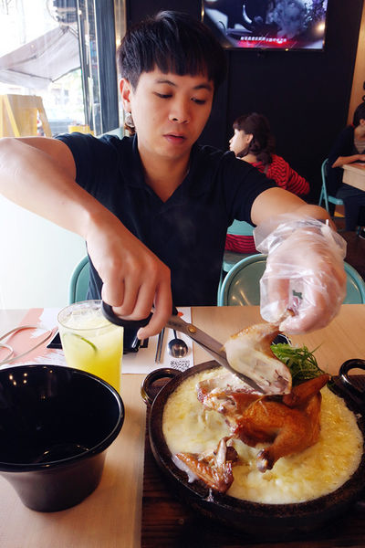 ♡感覺也只等待個十幾分鐘而已,看起來非常熱騰騰的鍋巴烤雞就上桌了