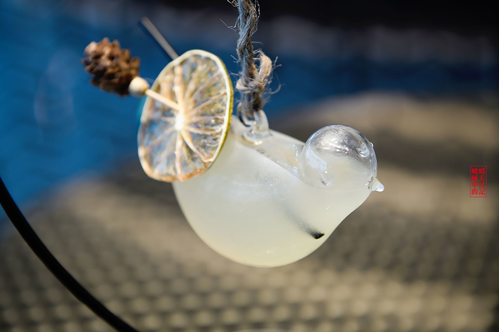 使用了椰子與蘭姆酒,再加入了甘蔗汁,不過實際喝起來椰子與甘蔗汁的口味並不是特別搶鏡,倒是蘭姆酒的酒味比較令人印象深刻,甜甜的很好入口,再加上超級特別的小鳥酒器,光是賣相就已經脫離了單純調酒的認知範疇了。