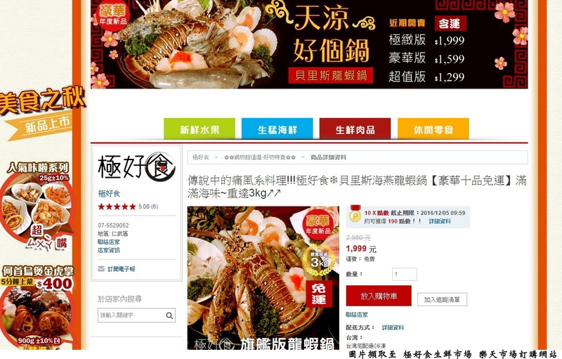 看到樂天市場中「極好食」網頁 以傳說中的痛風系料理為標題