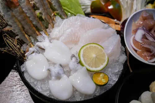 魷魚與白蝦蠻新鮮的,用餐快結束時會送上一杯冰沙飲料