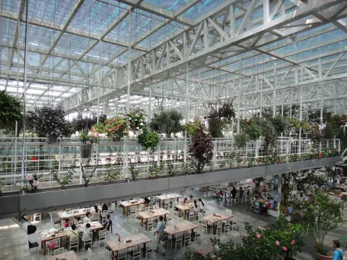香草菲菲是一座由鋼構、玻璃、木質三種元素所建造而成,是很大的一座室內的溫室花園