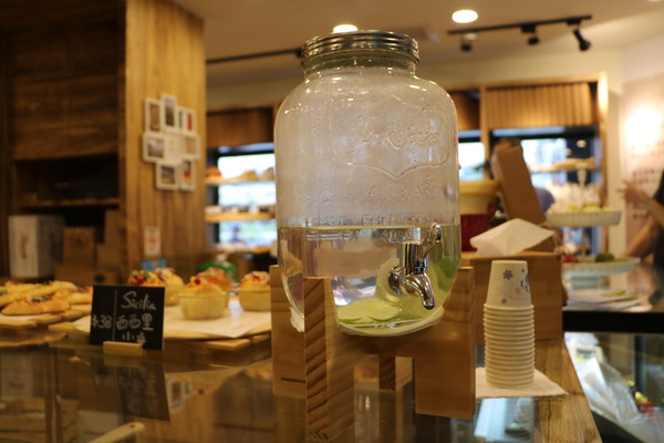 Bergamill貝加米爾麵包種類琳瑯滿目,一進門麵包香氣便撲鼻而來,除了提供試吃,店內還準備檸檬水供客人飲用。
