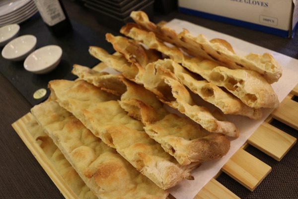會場擺上各式各樣義大利麵包,每款都很經典。有潘那朵尼、佛卡夏、恰巴達、西西里、蛋白餅以及方型披薩等等。外觀看起來與歐式麵包無異,最大的不同是義大利百年酵母技術,再加上常溫熟成,讓麵包每天吃起來的口感都略有不同喔。