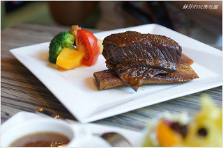 鮮蔬沙拉 蕃茄、葡萄乾、美生菜 蘇菲點了微酸口感的凱撒醬 蘇菲老公點了酸酸甜甜的和風醬
