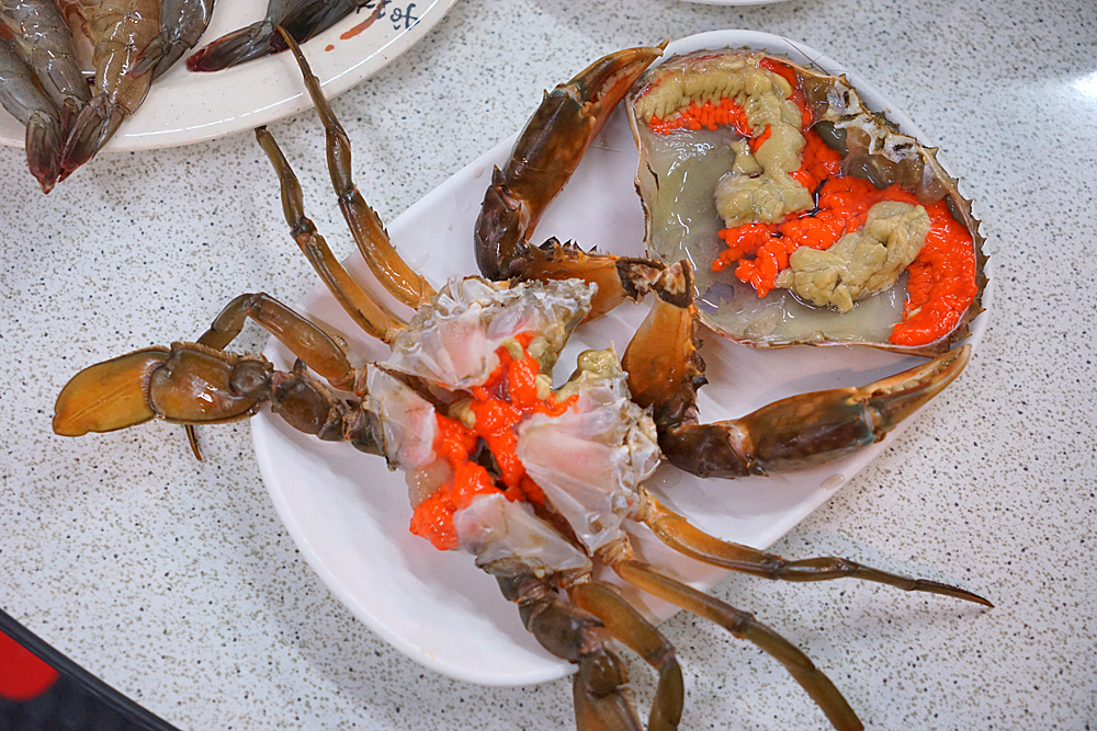 野生紅蟳是限量的,都是從台南上來的活碰亂跳的,正因為要給客人最新鮮的食材,不做冷凍紅蟳的方式積庫存,所以建議要去前可以先打電話問一下是否有貨。
