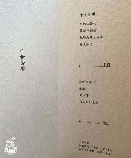 ▲除了單點以外,也有供應午食套餐,就算沒朋友一個人也可以來弄堂享用江浙料理