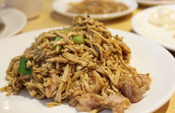 所有內容物都要切成絲狀,講求刀工和鍋氣的料理,刀工要細膩成熟,翻炒過程中不能讓干絲斷掉,要呈現一絲絲(請自行想像小當家大火翻鍋的畫面)肉絲嫩豆干軟醬油香,口感上鹹甜之中帶有鍋氣,一定要叫碗白飯來配上這一盤