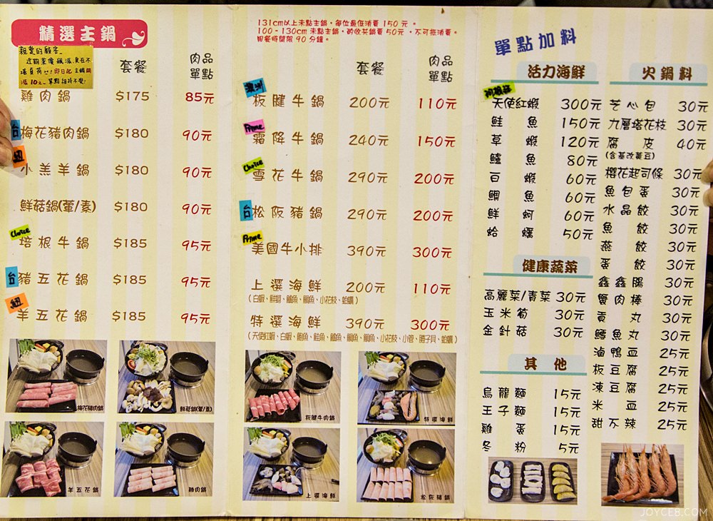 我們去的時候是11月底,店家剛好是在12月換新菜單,哈哈,也太不巧了,但新舊菜單的內容沒有差非常多,鍋品都還是185元起跳。