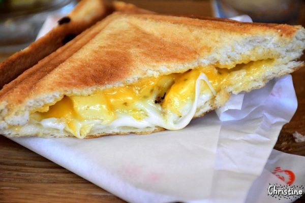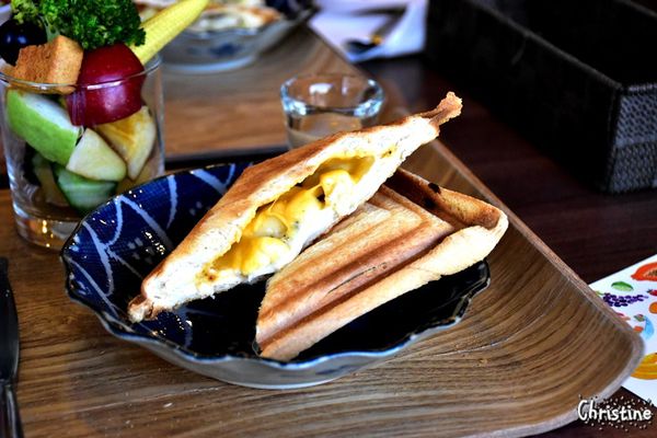 ▼ 如下就是熱壓吐司 , 下午也可以點和早餐口味一樣只是少了青醬蕈菇起司
