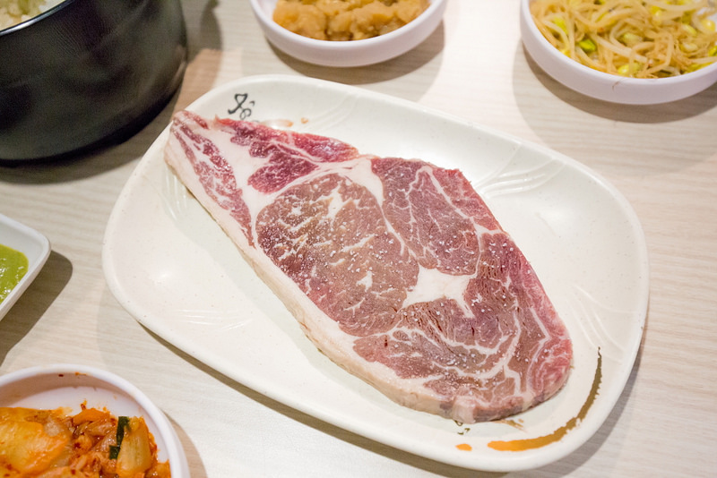 今天吃到的Prime肋眼牛和黃金松阪豬,前者更適合作為美生菜包肉來吃,稍作消除肋眼部位會有的油脂,以價位和份量來說很公道