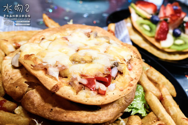 這披薩其實是有玄機的,上頭兩層是甜的!下頭3層是鹹的,所以點一個披薩,