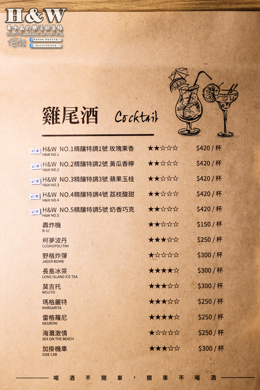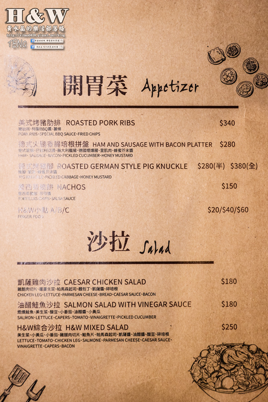 FACEBOOK粉絲團、官網:H&W Restaurant and Bar