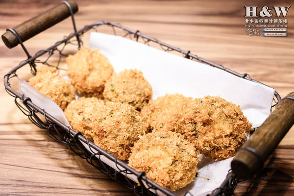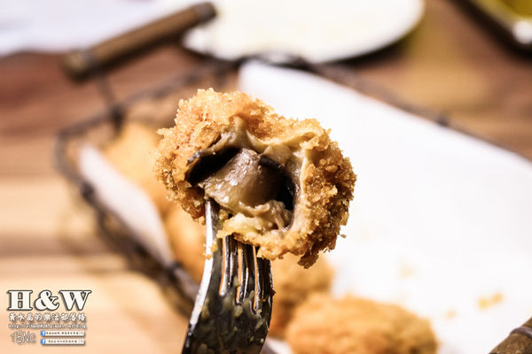 這一道算是小品,將磨菇用麵包粉裏住,再下油鍋炸到金黃就可以起鍋囉!