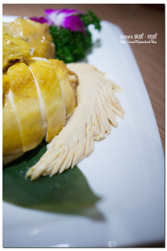 白斬玉米雞的肉質軟中帶有咬勁,雞肉本身是甜美的,