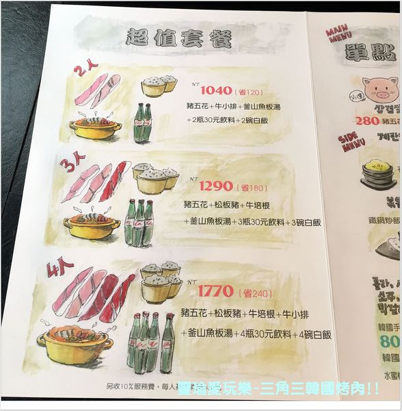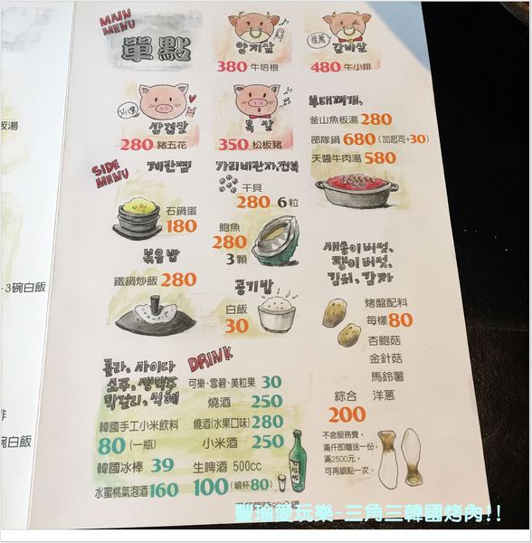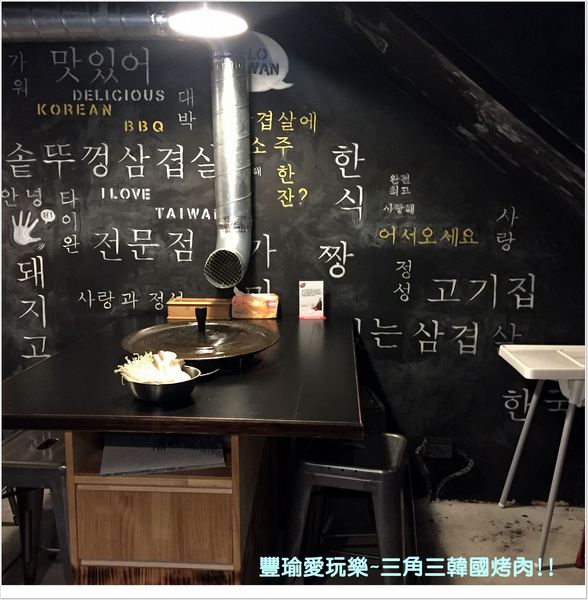 三角三店家位置真得好隱密呢,一到大門口要進入黑洞中了,有許多可愛的設計,一隻豬的logo 鍋蓋韓國烤肉,店面小小間的,所以生意好的時侯就要排隊囉,