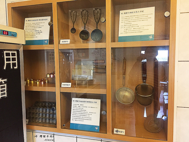 ▲展示櫥窗裡擺滿了從前烹調的餐具和經營三代的歷史紀錄