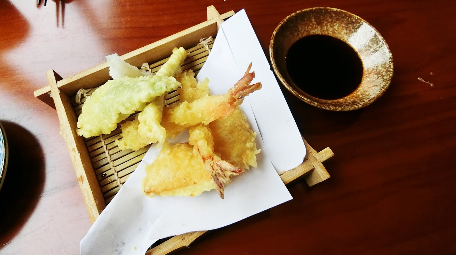 另外在預定時店員有詢問我們是否有人不吃生食,我們是一位吃一位不吃,所以第三道的不吃生食的部分是送來了炸蝦天婦羅,配上地瓜、青椒等等