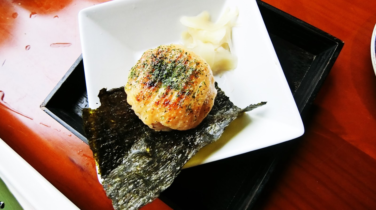 另外這是不吃生食友人的明太子烤飯糰,認真建議如果看到文章的人可以特別指定這個,好好吃喔!我熱愛明太子,但在台北都沒有吃到這麼好吃的明太子飯糰,雖然旗魚搭配魚子醬很好吃,但明太子飯糰完勝。