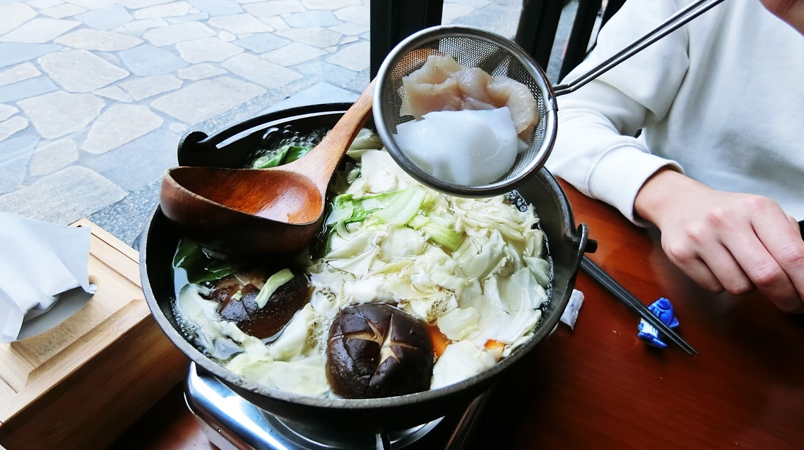 在煮的過程中又送來了這道澎湖小卷,是以清燙方式再加上簡單的醬料,這時候我們已經八九分飽了!但還是把所有海鮮都吃光光