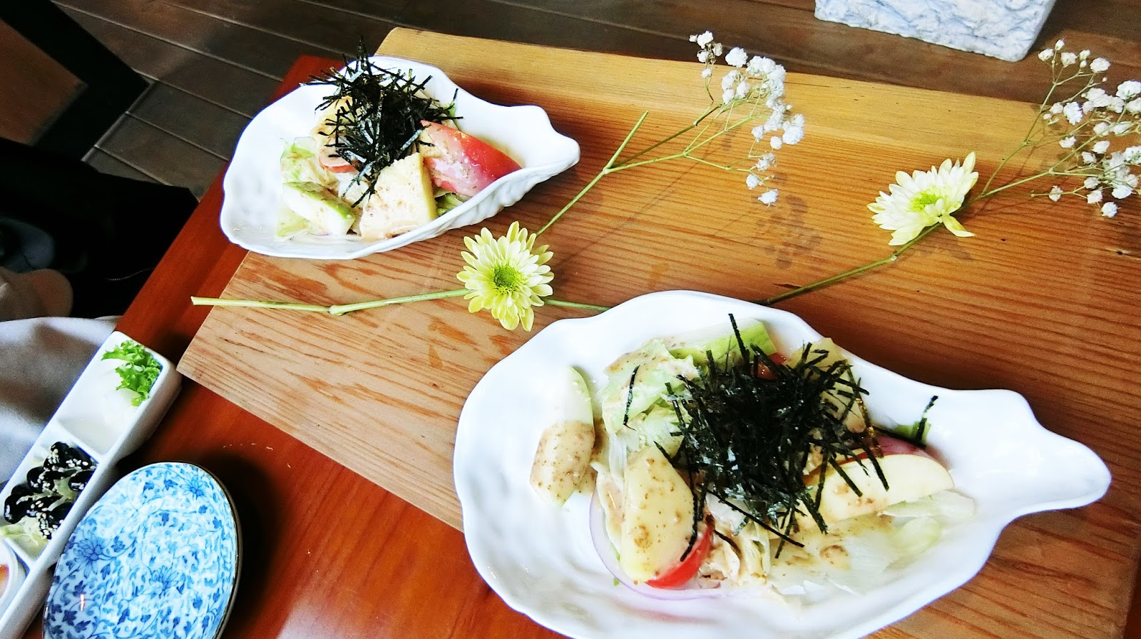 接著是擺盤還來了幾朵花的胡麻蔬果沙拉!