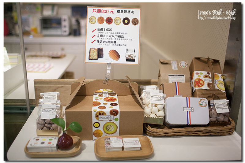 甜點跟鹹派都獨自用紙盒裝起,貼上店家的標示,清新簡約。