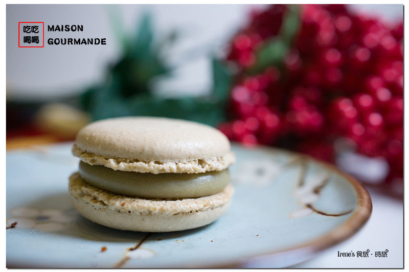 馬卡龍,也是很經典的法式甜點,純粹是因為抹茶口味才挑選;