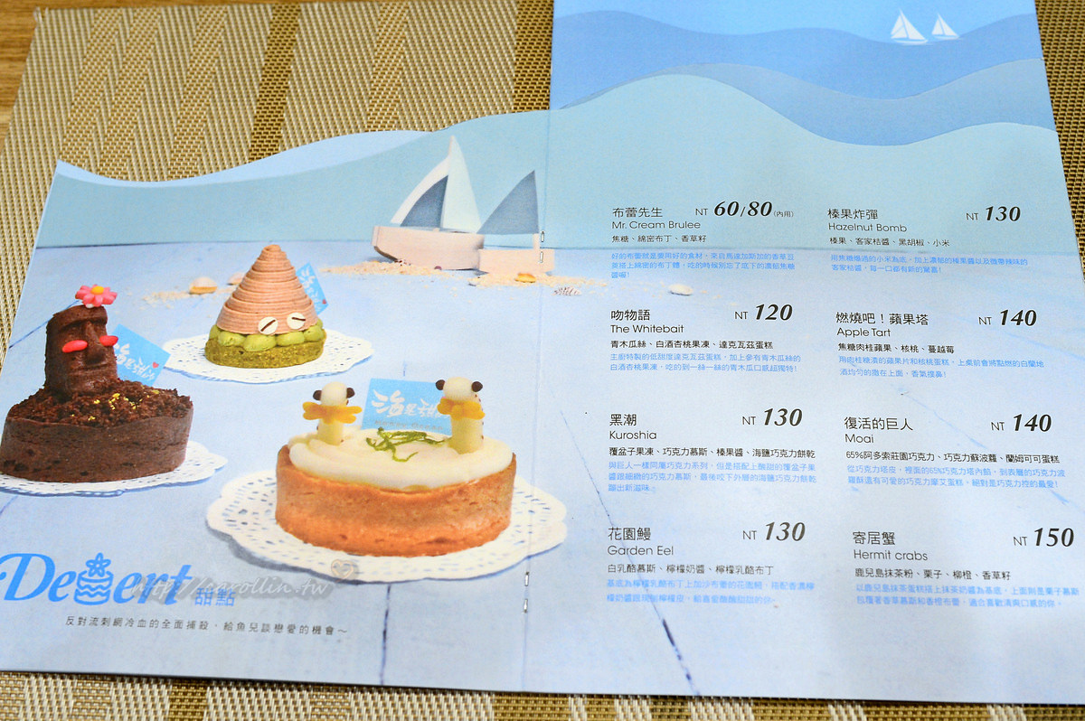 店長是位淺水愛好者,因為熱愛海洋而將這些元素融入甜點,每道甜點的背後也都有環保相關議題的故事。