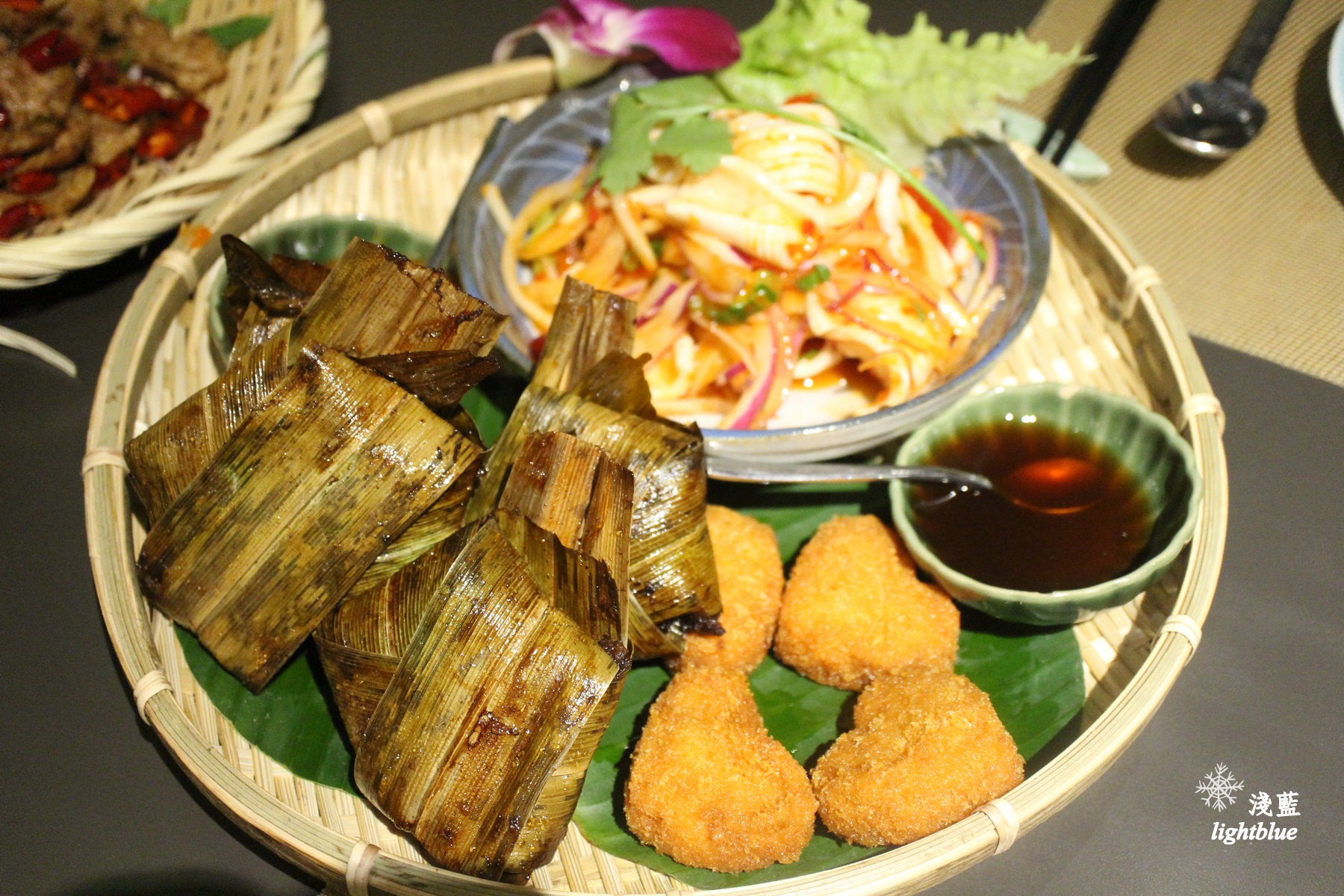 這道是孜然松阪豬,以竹編的盤子上桌,極為泰式風情,我就是喜歡泰集在這種小地方也很仔細的用心,不管是自己來吃飯還是請客聚餐,都能賓主盡歡有面子