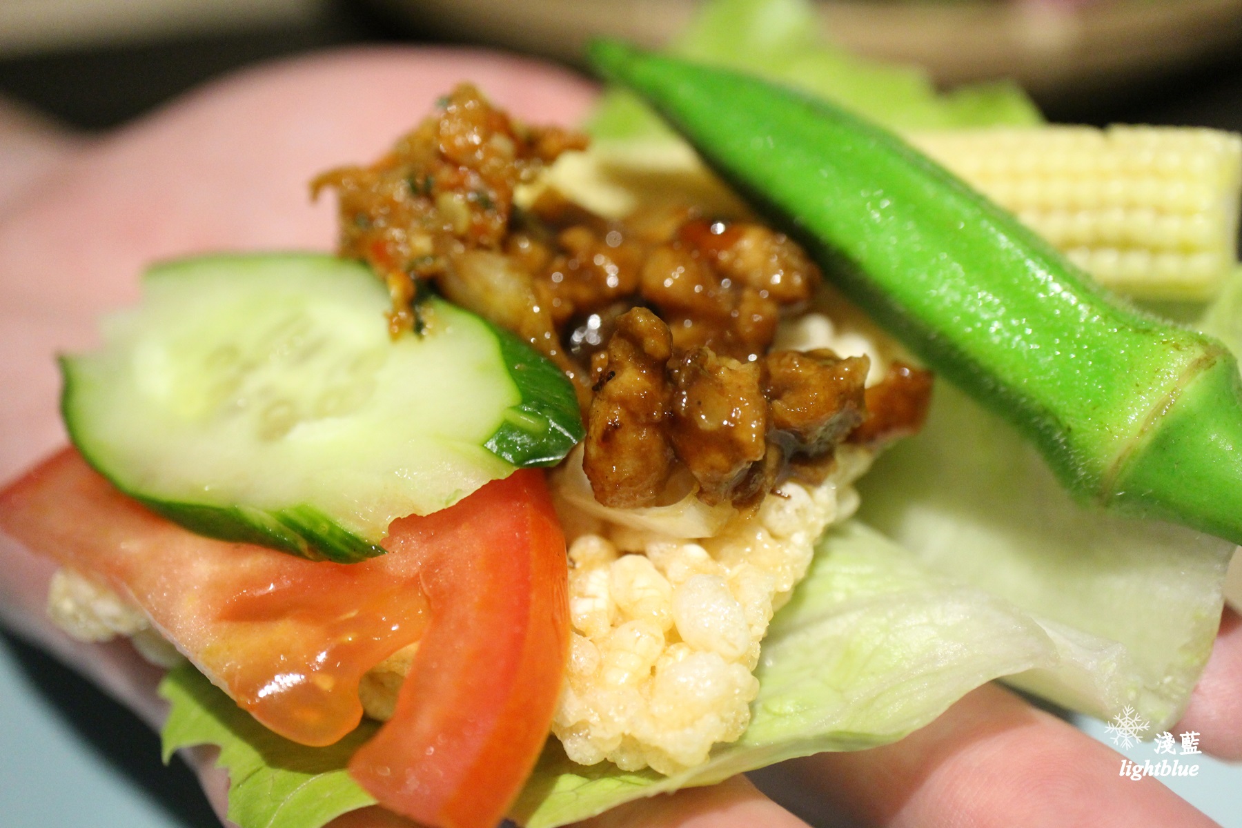 搭配蔬菜剛好達到平衡,更多了分清爽,包起來一同入口,讓各種味道跟不同層次的脆度衝擊出令人記憶深刻的用餐感受