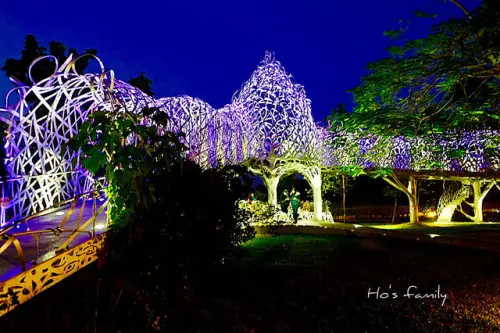 由鋁片編織而成的"月影潭心"設置,到了夜晚便會點上五彩繽紛的燈光。