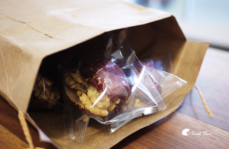 裡頭裝滿了大丸核桃棗,一袋是320g,總共有12顆。