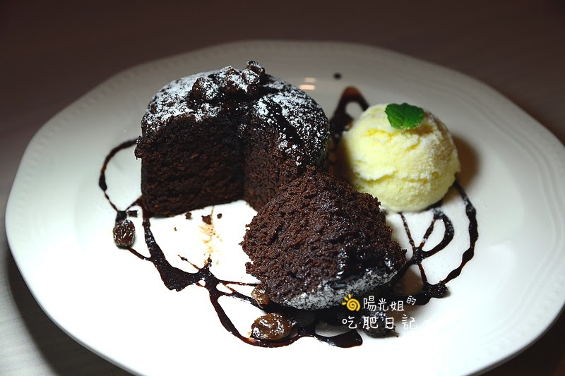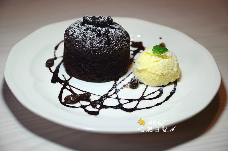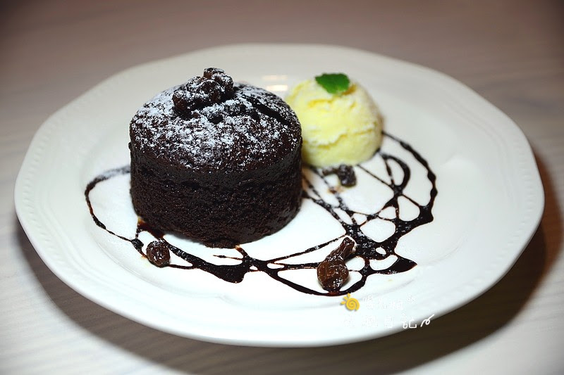 使用米歇爾柯茲巧克力製作,美式厚實口感不走爆漿路線,帶有濃郁的可可香氣,上層有類似糖衣的口感,搭配自釀白蘭地葡萄乾,入口多了股酒香,成為一道大人味的甜點