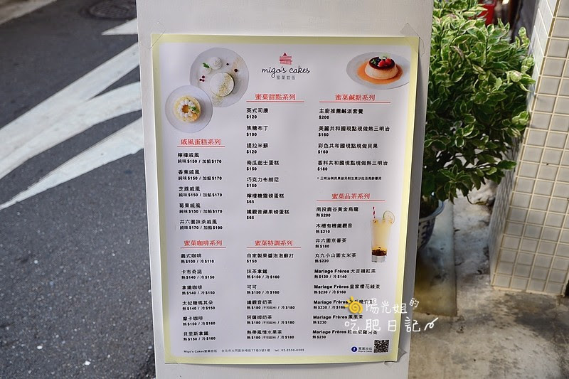 ▼Migo's Cakes 蜜菓拾伍甜點咖啡店,從雙連站走民生西路轉進赤峰街第一條巷子左轉,步行大約三分鐘就可以找到!民生西路上有汽機車停車格,店家門口前面的巷子是狹小的巷子。