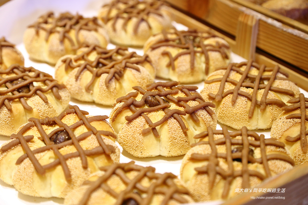 上面撒上了一些巧克力粉,帶點苦味,讓整個麵包不會太甜