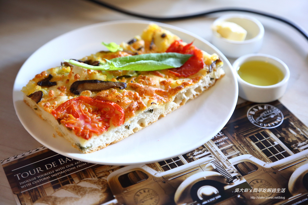 表層的新鮮香菇跟羅勒味道也非常地搭,還鋪上了新鮮番茄一起進烤箱烤