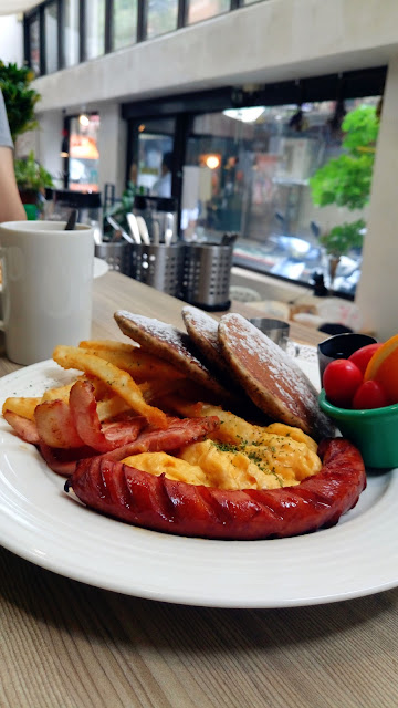 真的是超大份量,絕對可以當作早午餐享用,臘腸不乾硬,