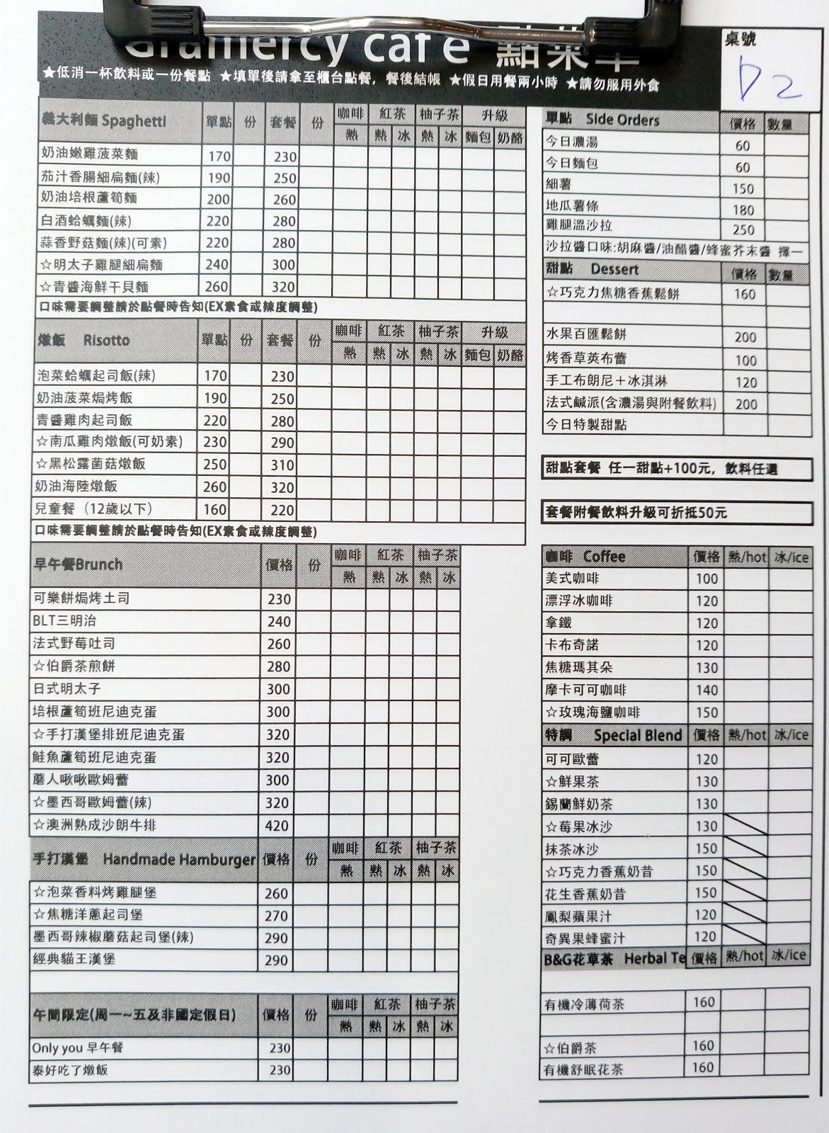 ▼詳細的價目表由另一張菜單勾選,低消一杯飲料或一份餐點