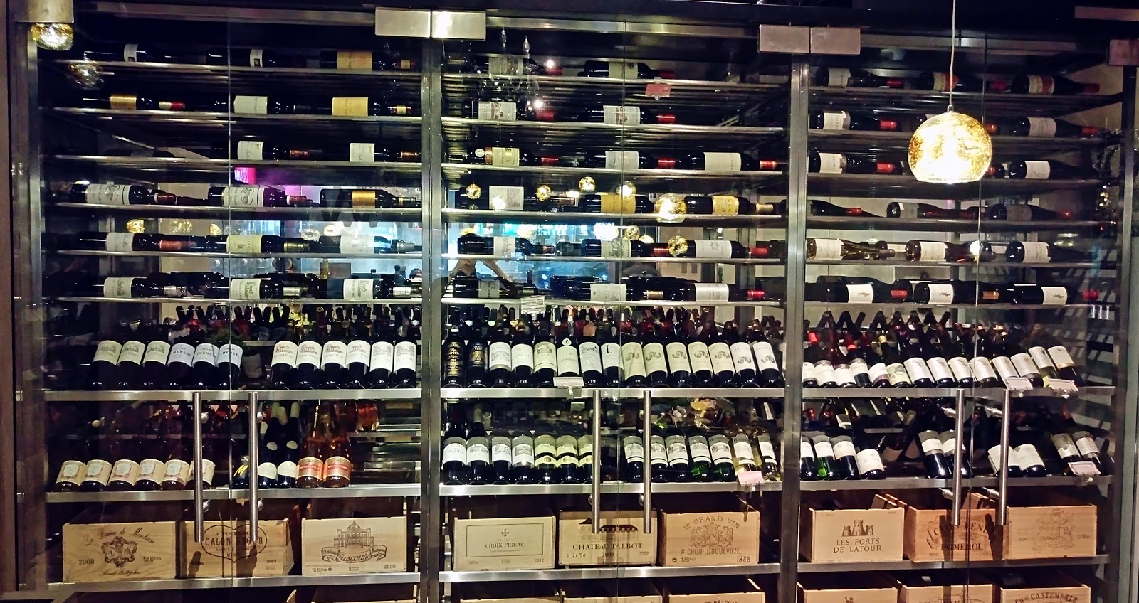 有很多華麗的水晶燈,還有一大片的製酒櫃當現成裝飾