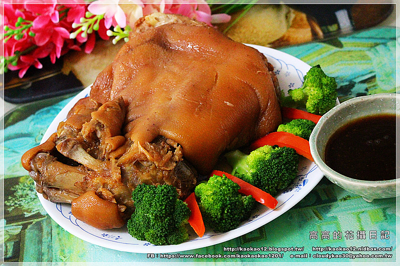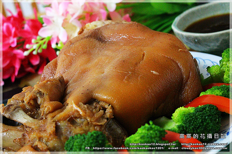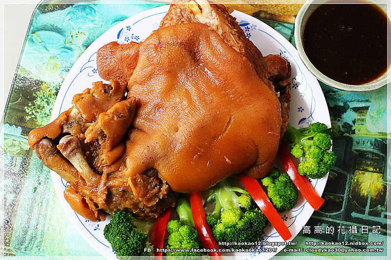 看上圖這道萬巒豬腳不太準,因為外面賣的萬巒豬腳也都會把沾醬跟豬腳分開來放,